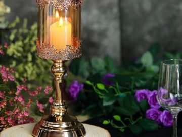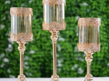 17" Gold Hurricane Glass Candle Holder