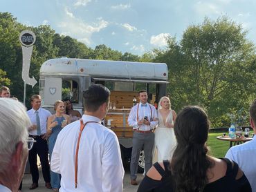 "The Silver Charm" is a 2 horse trailer converted into a mobile bar. We work with you to craft great cocktails, offer top notch bartending service and elevate your event! Contact us for your wedding or event bartending service!